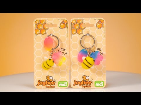 Niedlicher gefilzter Bienen-Schlüsselanhänger mit schwarzen Perlenaugen. 2 halbtransparente Anhänger mit einer Hibiskusblüte und einem kreisförmigen Anhänger. Der Artikel kann zwischen 2 Farben variieren: Pfirsich/Gelb und Blau/Rosa.