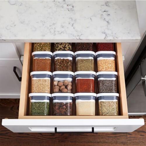 Das 4-teilige Mini-POP-Behälterset von OXO Good Grips ist dafür gemacht, getrocknete Kräuter und Gewürze frisch, ordentlich und griffbereit aufzubewahren. Der luftdichte Druckknopfverschluss und das platzsparende Design passen perfekt zu allen POP-Behältern. Dieses Must-Have-Set ist jetzt vollständig spülmaschinenfest und verfügt über praktische Füllmarkierungen, sodass das Organisieren auf die nächste Stufe gehoben wird. POP-Behälter sind nicht nur für die Küche geeignet, Sie können sie überall dort verwenden, wo Sie Ordnung schaffen möchten. Um optimale Ergebnisse zu erzielen, verwenden Sie zum Öffnen und Schließen immer die Taste. Tragen Sie POP-Behälter nicht am Deckel.