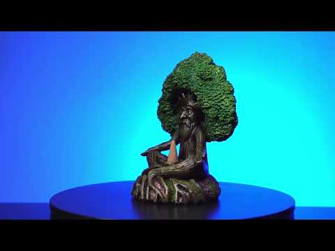 Magisk tilbagestrømning røgelse brænder med et mediterende gammelt træ. Placer en tændt røgelseskegle i træets skød, og se røgstrømmen ud gennem dens rødder. Velegnet til røgelseskegler.