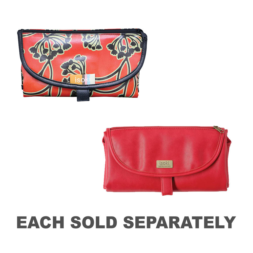 The Isoki Change Mat Clutch is a must have baby item giving your baby the best in comfort and cleanliness at change times. Folding up into a conveniently sized clutch is a large, easy wipe padded change mat with storage pockets perfect for carrying nappies and baby wipes.