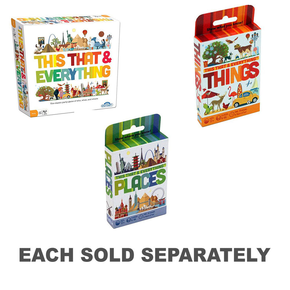Dette og alt: Places Card Pack er det navne-droppende festspil, der udfordrer spillerne til at beskrive steder for deres holdkammerater. En tilfældig liste over seks varer gør det at vinde en udfordring - så vær klar til at råbe ud af dette, det og alt derimellem for at tjene mest point! Dette kortspil inkluderer eksklusivt indhold, der ikke er inkluderet i Big Box -spillet, og det kan spilles på egen hånd eller som en supplerende pakke.