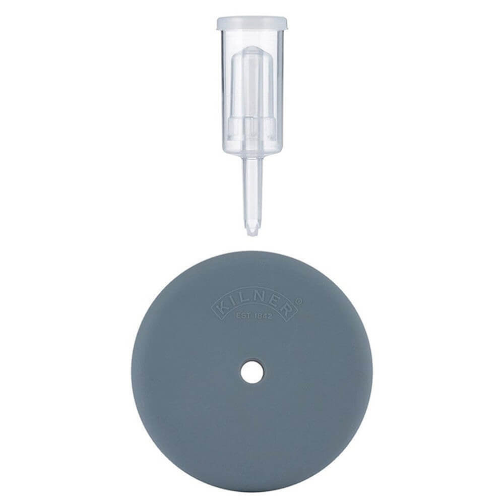 Kilner Fermentation Set 3L. This fermentation set features a large, three litre glass jar, a soft silicone lid with airlock and ceramic weights for keeping your ferment under the brine. Make your own sauerkraut, kimchi, pickles and more. One 3L jar.