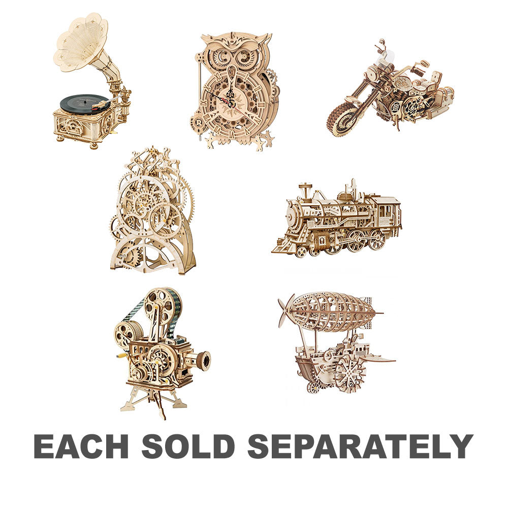- Includes: 229 pre-cut plywood pieces and the pieces to make a wind-up gear unit and spring drive.