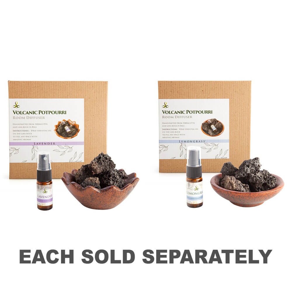 - Includes terracotta bowl, volcanic stones, black drawstring bag & lavender essential oil.
