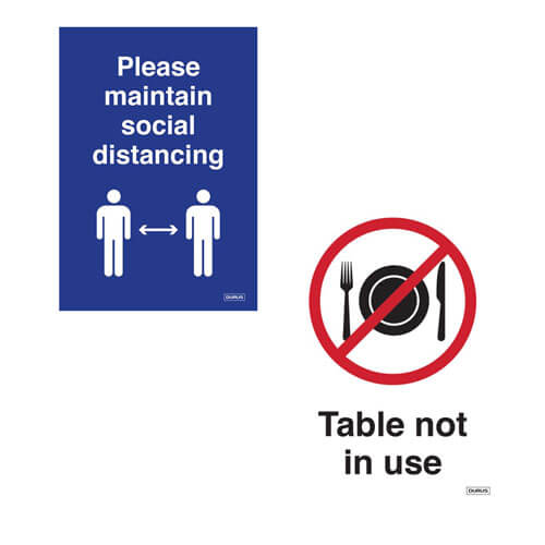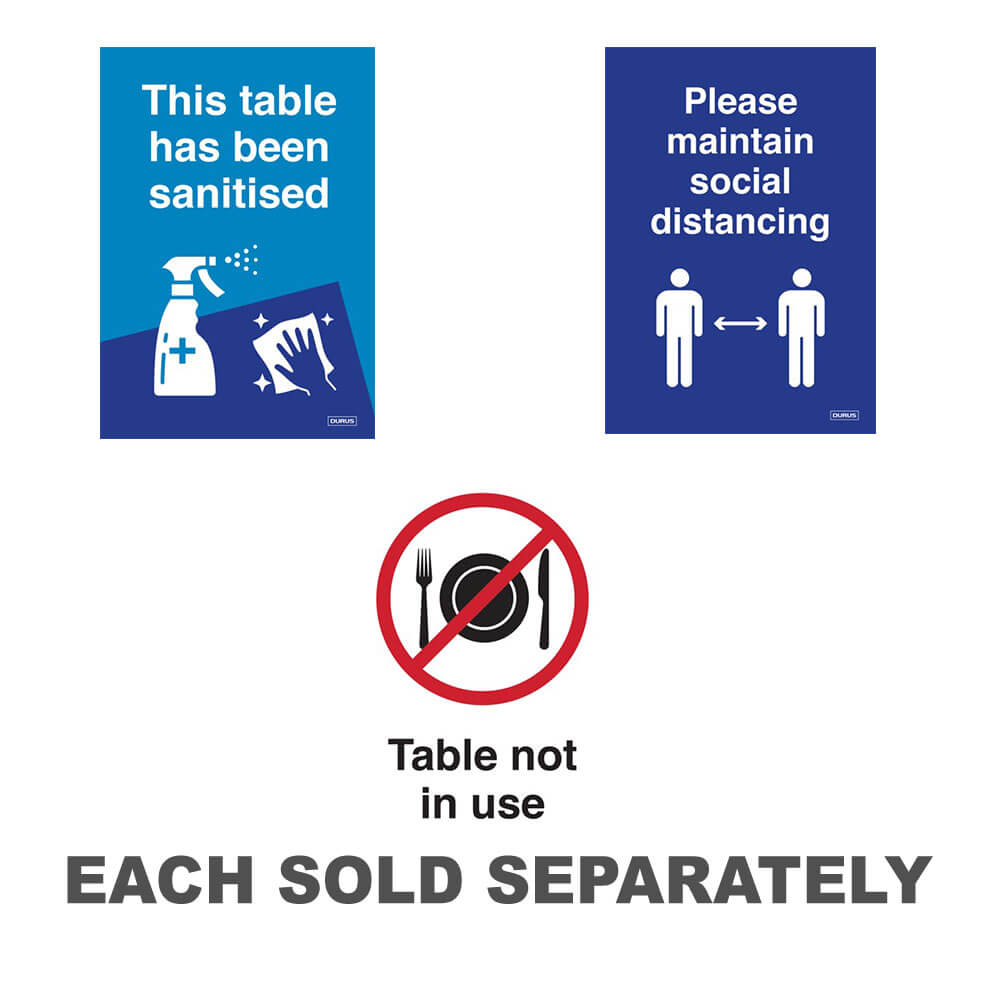 Este letrero para tienda de campaña DURUS es ideal para usarlo en su negocio para comunicarse con los clientes. Dice "Por favor, mantenga el distanciamiento social" y es independiente, lo que le permite colocarlo sobre una mesa limpia. Está fabricado en polipropileno de alta calidad y tiene el mensaje impreso por ambas caras.