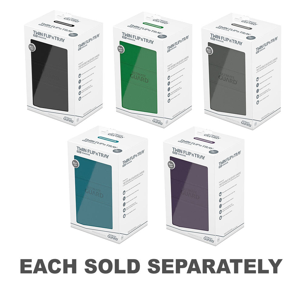 Una caja, dos mazos de cartas y una bandeja de accesorios adicional: nuestro gemelo Flip'n'Tray 160+ ofrece todas las características una gran necesidades de caja de cubierta. Duplicando el tamaño de nuestro clásico Flip'n'Tray 80+, esta caja es el hermano más grande que todos buscan. El gemelo Flip'n'Tray 160+ puede contener 160 cartas de tamaño estándar de doble manga o 200 de manga de una sola manga*.
