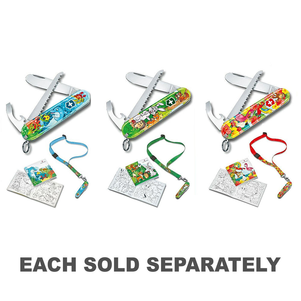 Los niños son naturalmente curiosos. Nuestro divertido juego de navaja de bolsillo los ayudará a explorar e interactuar con el mundo que los rodea. En tres emocionantes diseños de animales, cada set viene con una correa de cuello práctica y un libro para colorear lleno de aventuras que también muestra a los niños cómo usar sus cuchillos con seguridad (con supervisión de adultos). Desde tallar pequeñas figuras hasta palitos, ayúdelos a crear recuerdos para toda la vida.