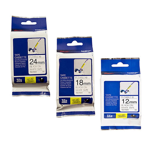 Eine 12-mm-Vinylbandkassette in Schwarz auf Weiß zur Verwendung mit Casio-Etikettendruckern.