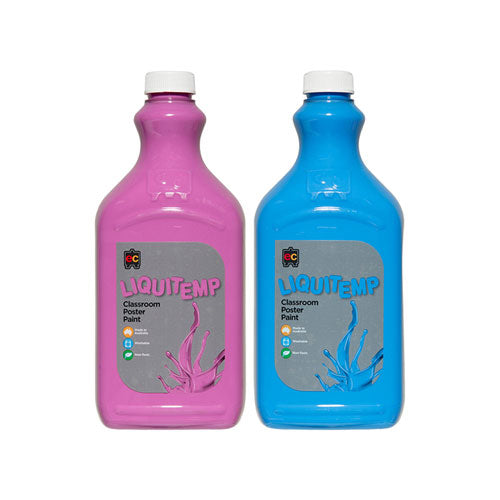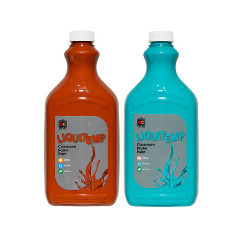 Conveniently packaged in a 2-litre environmentally friendly PET bottle, the Liquitemp Classroom Poster Paint is easy to use. For quick, efficient paint dispensing without heavy lifting, fit the bottle with an Educational Colours Paint Pump.