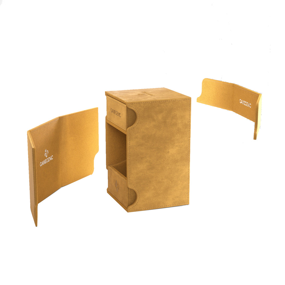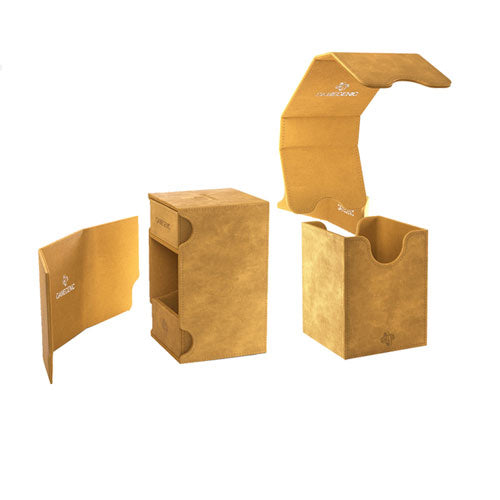 “Let me keep your thickest loot.” – TOP and EXCLUSIVE FEATURE: Made to fit 100 double-sleeved cards in particularly thick Inner Sleeves*.We created our Squire 100+ in an exclusive extra-large version that holds 100 regular double-sleeved cards and has extra space for additional tokens, or it fits perfectly a Commander** Deck in thicker inner sleeves. The Convertible line is designed to present cards in new and unique ways. Remove the lid, attach it to the bottom or start tilting your box in a wide variety of ways. Powerful magnets keep it safely closed.