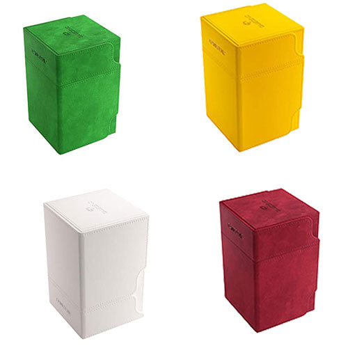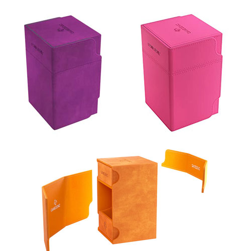 Der umwandelbare Watchtower vereint Deckbox, Zubehörschublade und Kartenhalter in einer eleganten Box. Der Kartenhalter bietet Platz für bis zu 100 doppelt gesleevte Karten, geschützt durch ein weiches Innenfutter aus Mikrofaser. Die Zubehörschublade eignet sich perfekt für die Unterbringung von Würfeln, Token und anderen kleinen Gegenständen.