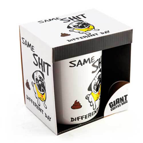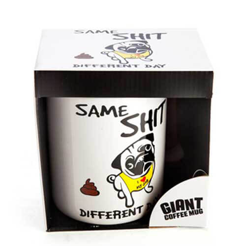 - Mit einem süßen kleinen Mops auf einer wirklich großen Tasse, der Sie durch einen weiteren dieser Tage begleitet