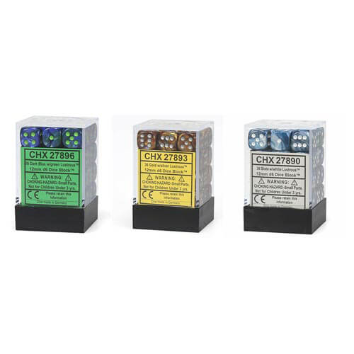 • Lustous 12 mm D6 Bloc de dés chessex (36 dés) - noir avec pipers dorés