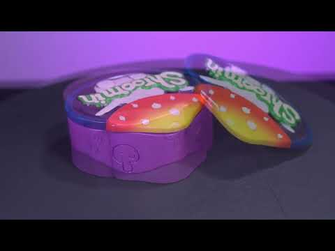 - Presenta un fungo rosso sorridente con frase punny "shroomin"