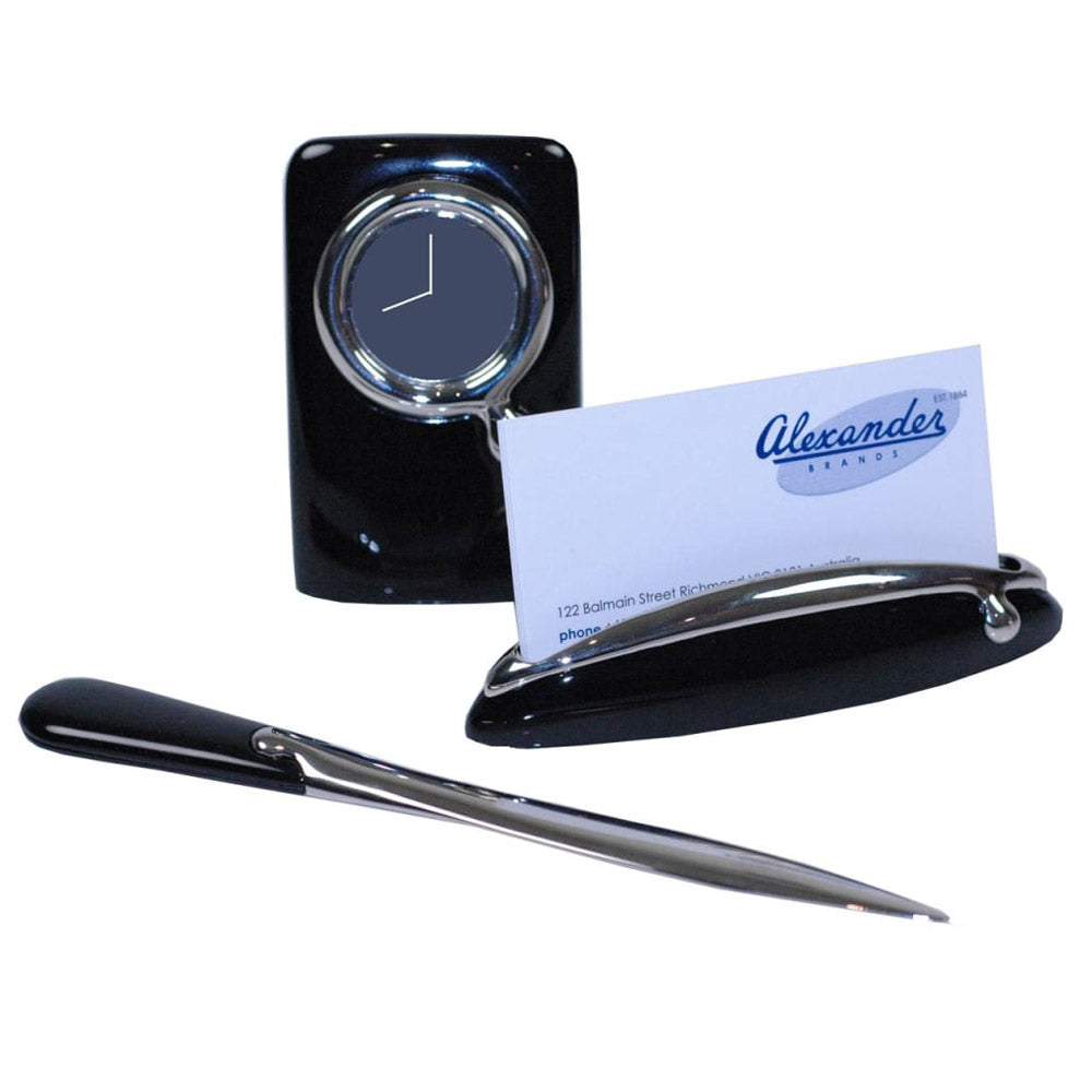 - Elevate your workspace with this sleek black desk set that combines elegance and functionality in one stylish package!