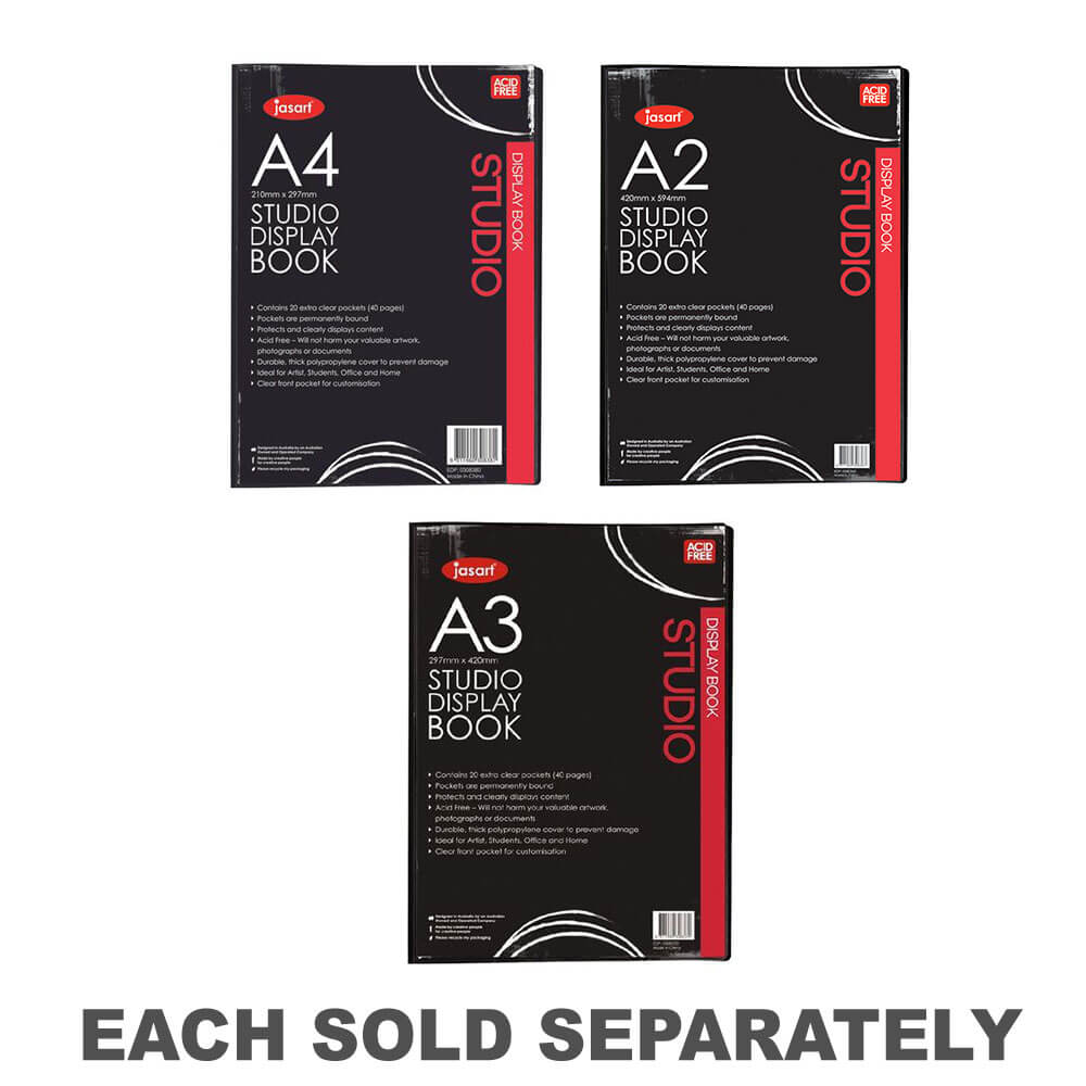 Jasart Studio Display Booksは、内容を保護し、明確に表示します。フロントカバーポケットを使用して、レーベル、タイトルページ、写真を表示して、ディスプレイブックをパーソナライズします。機能:ページは耐久性のために永久にバインドされています。