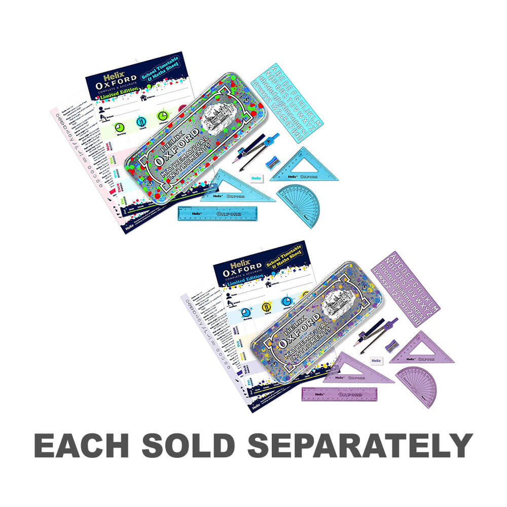 Helix Oxford Blue 9ピース数学セットは、学校の数学の必需品を蓄える便利な方法です。クラスワークに加えて、いくつかの文房具の必需品とそれをすべて一緒に保管するための耐久性のあるスズが多数の数学ツールが付属しています。
