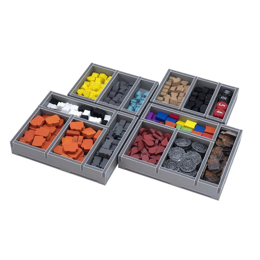 互換性のある挿入 北海のレイダーズ、 Hall ofHeroes®やFields ofFame®の拡張を含む。このデザインは、効率的なストレージと改善されたゲームプレイの両方を提供します。多くのトレイはゲーム中に利用でき、セットアップと明確な時間を大いに助けます。ルールとボードは、トレイの上にふたとして機能します。