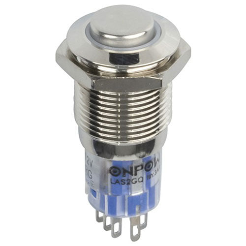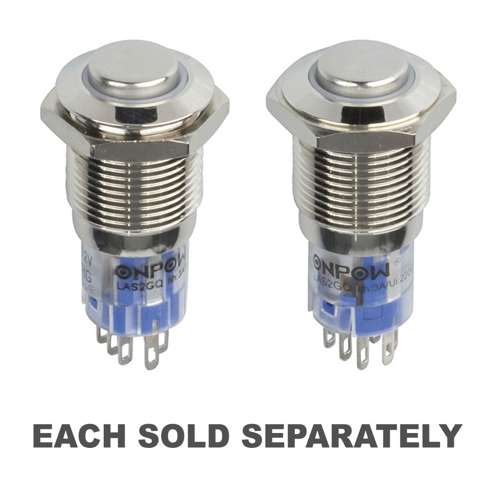 産業用またはその他の過酷な環境のためのIP67定格スイッチ。デュアルカラーレッド/グリーン照明、金属体、DPDT、瞬間的なアクション。