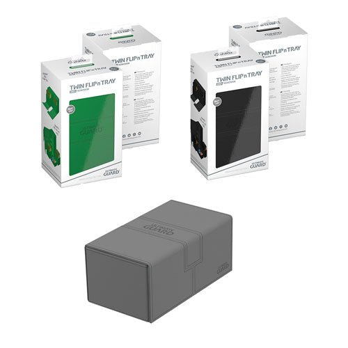 1つのボックス、2枚のカードデッキ、および追加のアクセサリートレイ:Twin Flip'n'tray 200+は、優れたデッキボックスに必要なすべての機能を提供します。クラシックなFlip'n'tray 100+のサイズを2倍にするこのボックスは、誰もが探している大きな兄弟です。 Twin Flip'n'tray 200+は、200個のダブルスリーブまたは240個のシングルスリーブ標準サイズのカード*を保持できます。