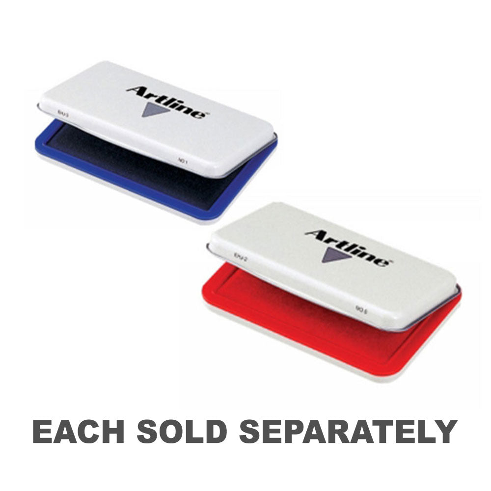 Kwaliteitszegels met metalen en plastic behuizing en een stoffen inktmat. Op watergebaseerde inkt, kleurstof inkt, hervulbaar. Artline -postzegelkussen die niet uitdroogt wanneer ze voor een langere periode open worden gelaten.