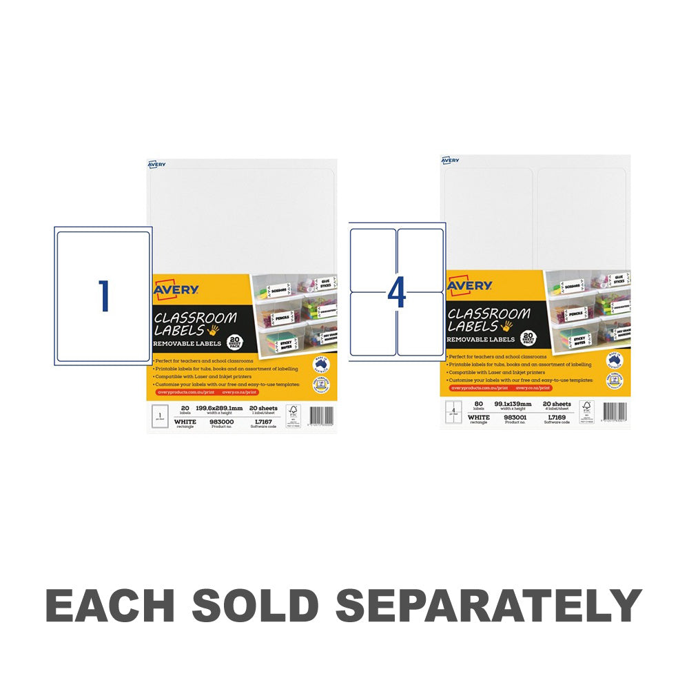 Avery verwijderbaar klaslokaallabel 20 stcs