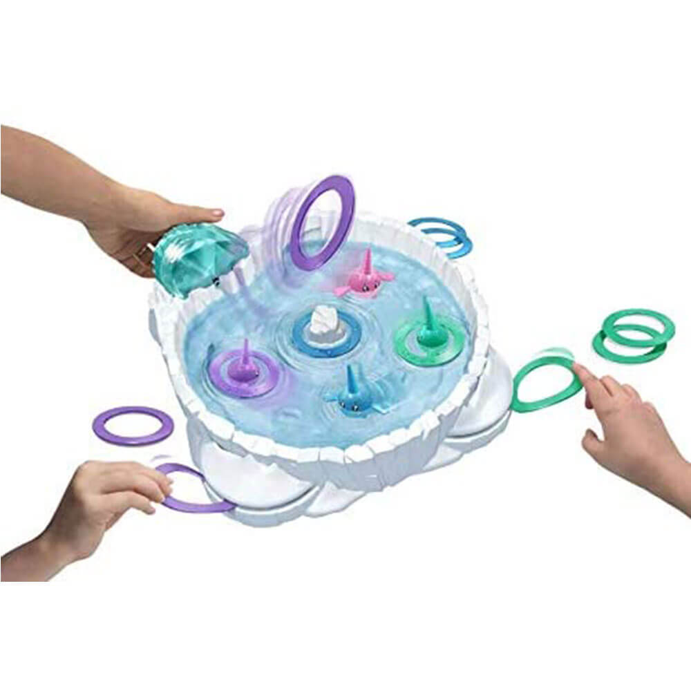 • Scorepunten in Narwhal gratis voor iedereen door je gekleurde ringen op de slagtanden van de Narwals te laten drijven die in de ijsarena drijven. Verdien bonuspunten wanneer uw ringen op het narwal landen dat overeenkomt met uw kleur of op de ijsberg in het midden. De speler met de meeste punten aan het einde van het spel wint!