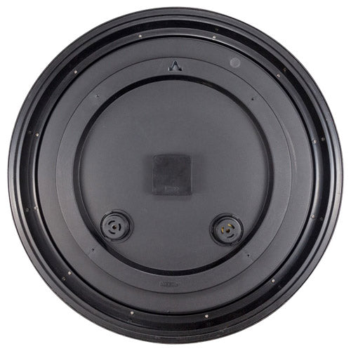 The large clock has a 50.8 cm black plastic case that frames a white dial with black hands. The contrast hands and linear markings makes the clock easy to read.