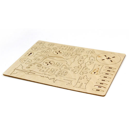 • Punch Out: zawiera jeden krój laserowy, certyfikowane przez FSC arkusz drewna z łatwo zdejmowanymi kawałkami.