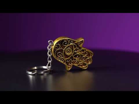 Mistyczny ręcznie malowany brelok do ręki Hamsa. Zawiera skomplikowaną konstrukcję HAMSA z metalicznym wykończeniem na tradycyjnym pierścieniu kluczy.