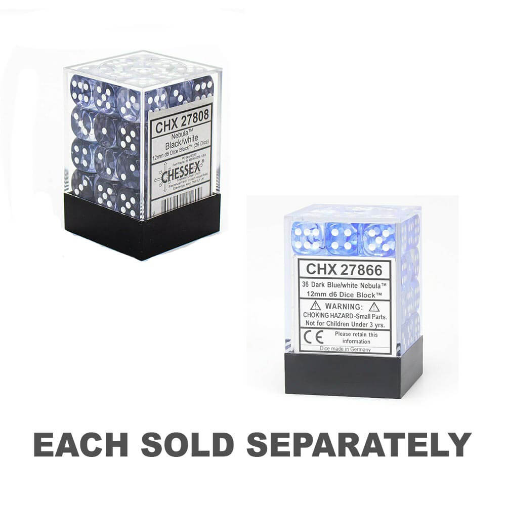 • Nebula 12mm D6 Chessex Dice Block (36 dados) - preto com pips brancos