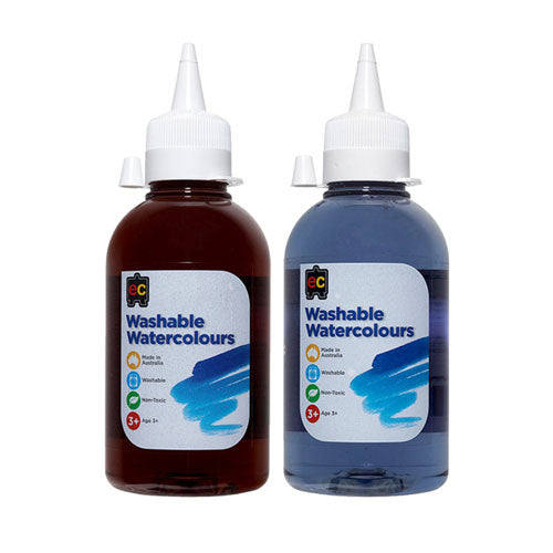 Housed in 250ml eco-friendly PET bottles, the Washable Watercolours not only radiate on paper but also show kindness to our planet.