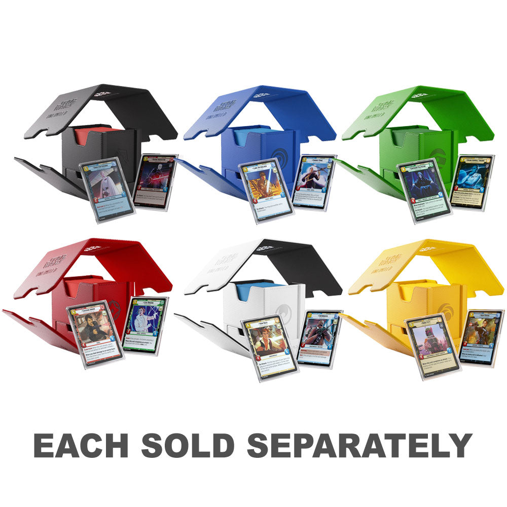 The brand-new Twin Suns Deck Pod, an officially licensed premium deck box, is specifically designed for the popular Star Wars: Unlimited Twin Suns format. UNIQUE FEATURE: The Twin Suns Deck Pod includes not 1 but 2 Slide Card Cases with additional UV protection for keeping the two required Leader cards safe. Due to the innovative placement of that cards, the stored deck can be easily identified without opening the box. Both Slide Card Cases can be detached and used during gameplay.