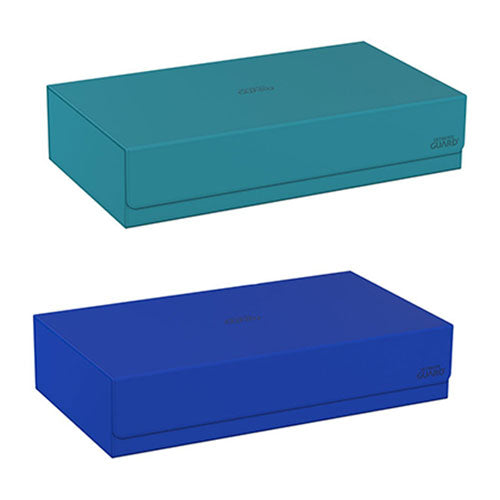 Introducing the new Omnihive 1000+! The ultimate spacious and flexible box for storing large collections. This box can hold more than 1000 doublesleeved cards or carry multiple decks and/or Play-Mats plus other Ultimate Guard products like the Sidewinder 133+. Two removable, magnetic, adjustable and stackable trays make this box unique: it's adaptable for all kinds of games and formats and enables multiple different ways of storing and using your collection.