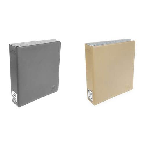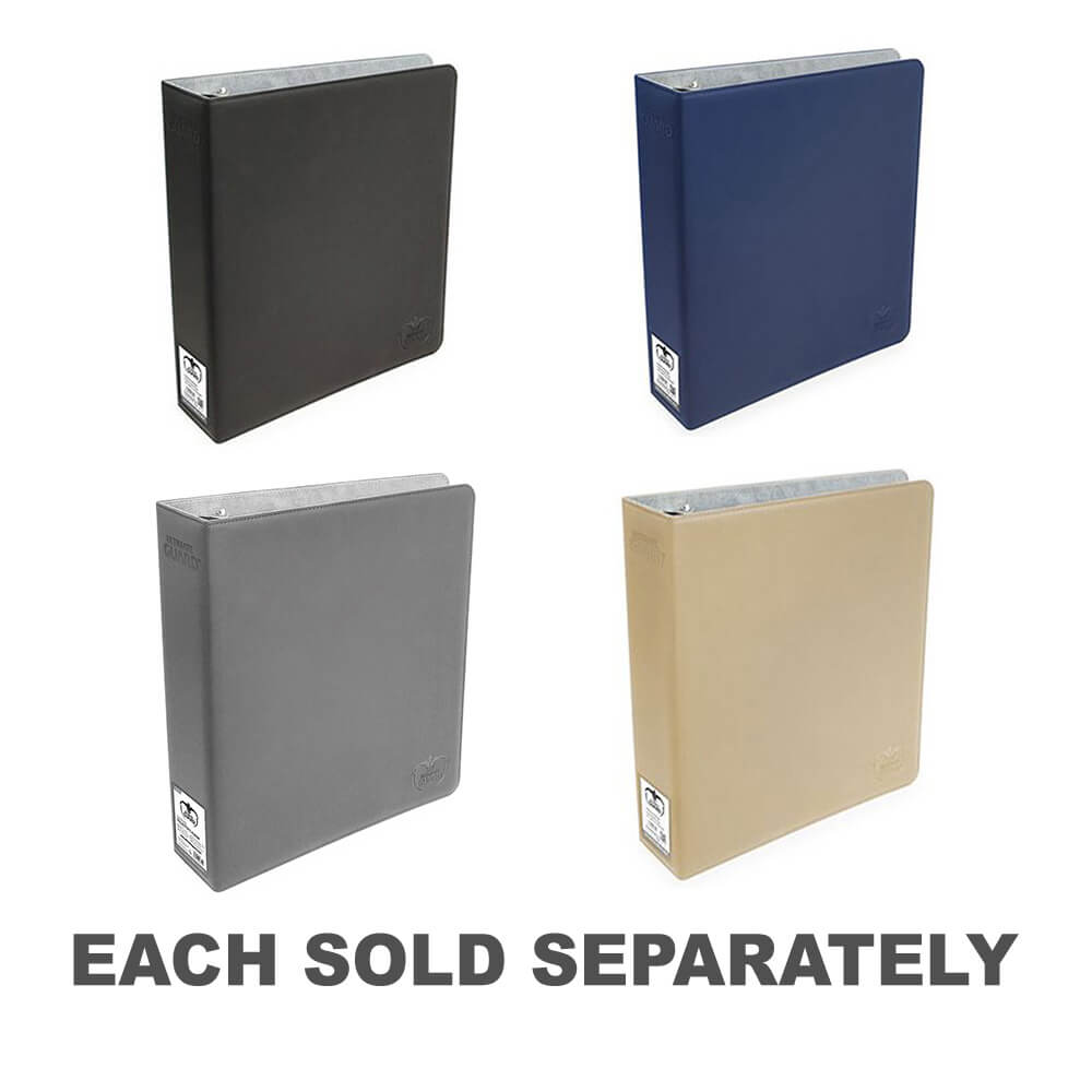 Álbum de cartões de alta classe com capa Xenoskin (TM) e anéis D 70 mm reforçados para 9 páginas de tamanho padrão.